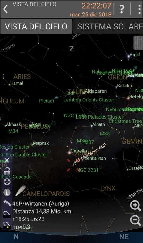 ore 21.45 ma anche più tardi va bene. La cometa è indicata dal nome