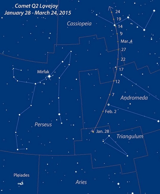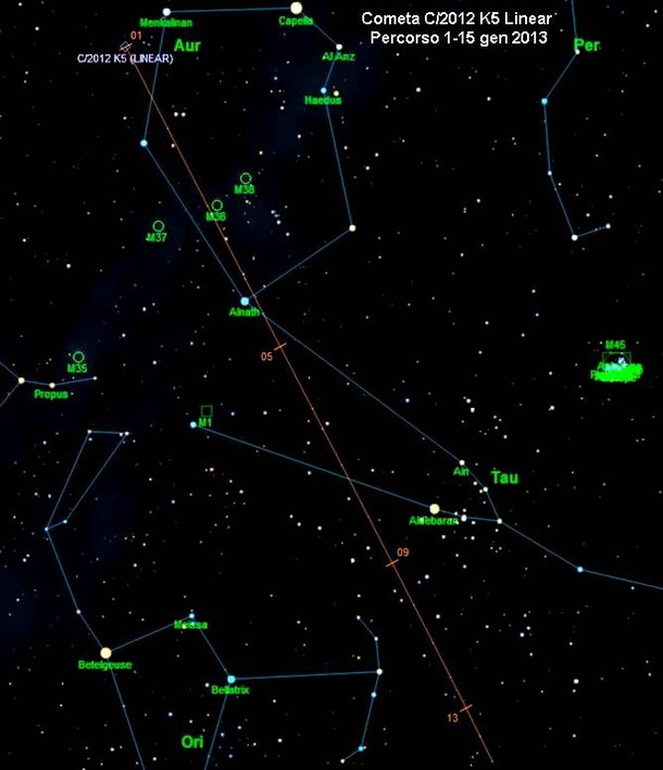 Nelle mappe sono indicate anche le comete Linear, Encke e Lovejoy