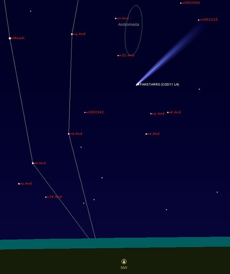 anche se più vicina all'orizzonte e visibile per molti giorni. Due comete in una volta al binocolo.