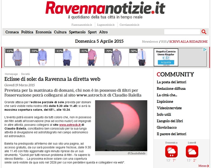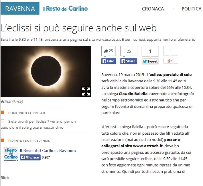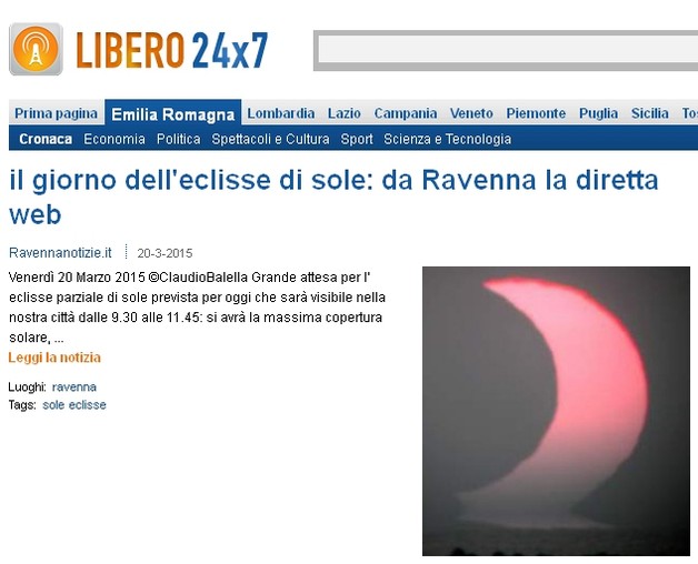 GRANDE SUCCESSO LA VISIONE DELL'ECLISSE PARZIALE DI SOLE DEL 20/3/2015