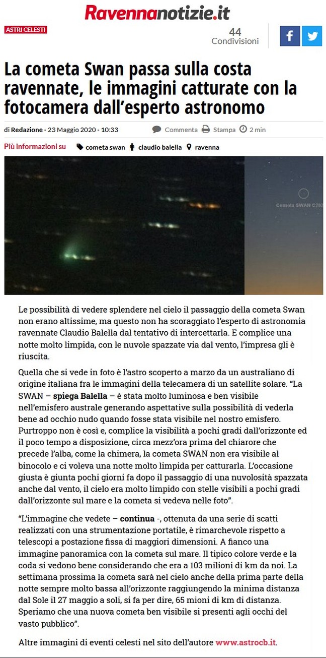 LA COMETA MC NAUGHT VALE UN VIAGGIO - ARTICOLO PUBBLICATO SULLE STELLE