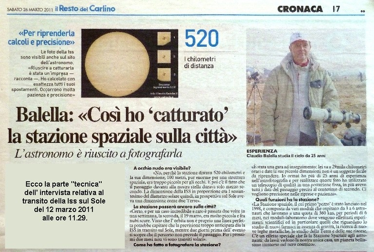 Mostro al dott. Cordiglia la foto della ISS ripresa al telescopio