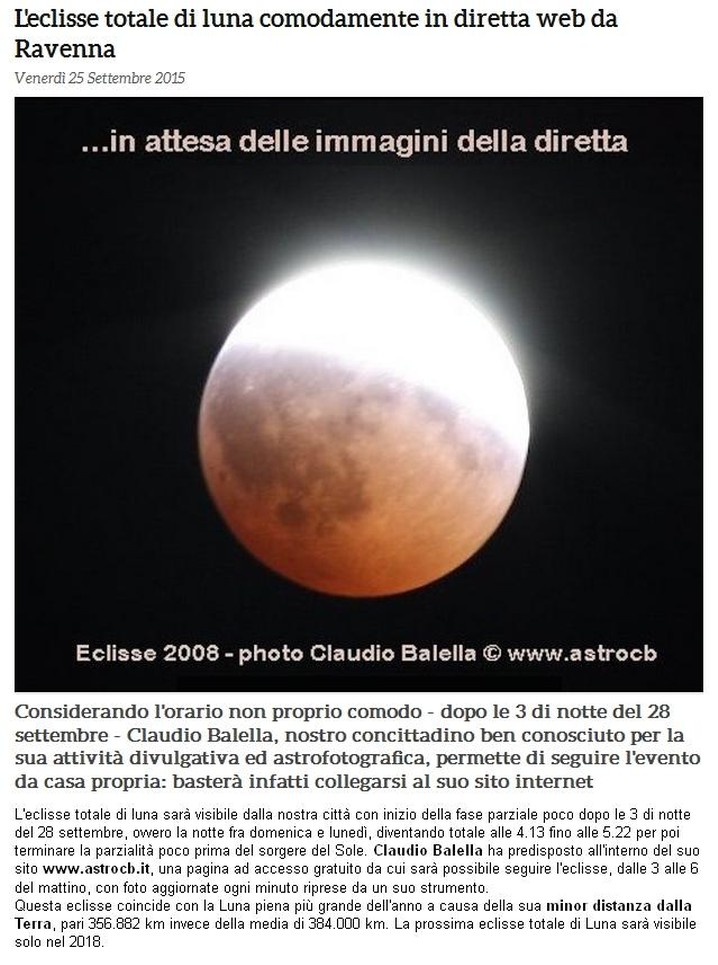 COL MIO SITO NELLA NOTTE PER VEDERE L'ECLISSI CHE SI E' APPENA INTRAVISTA MALAMENTE