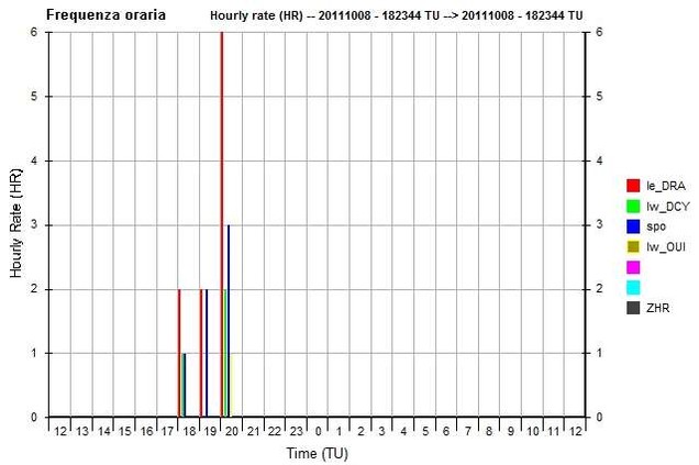 Qui si vede come il picco di attività delle Draconidi (in rosso)è stato alle 2006ut ovvero alle 2206
