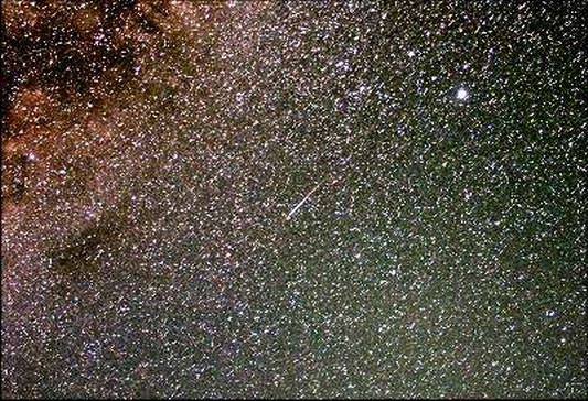 Le Perseidi del 2015 previste in numero di 100 all'ora in condizioni di buio, mi han un pò deluso per il non grande numero di meteore luminose e bolidi. Dalle 23 del 12 agosto fino alle 430 del 13 ne ho viste 30 di cui molto poche belle. Quella della foto è la migliore, un bolide proprio sullo sfondo della Via Lattea. Fantastica notte. Canon 600D 130815