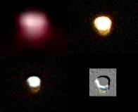 "Luci" riprese, la prima dalla spedizione ad Hessdalen 2003 e le altre in Italia dal sottoscritto il 1° ottobre 2002 dall'appennino. Non può sfuggirvi la notevole somiglianza e, nell'ultima immagine a fondo grigio, la struttura non circolare della "luce" simile ad ufo ripresi in altre parti del mondo !