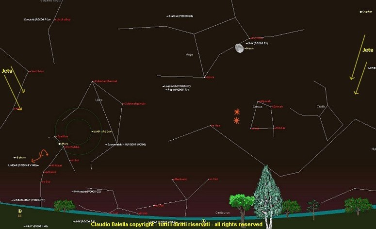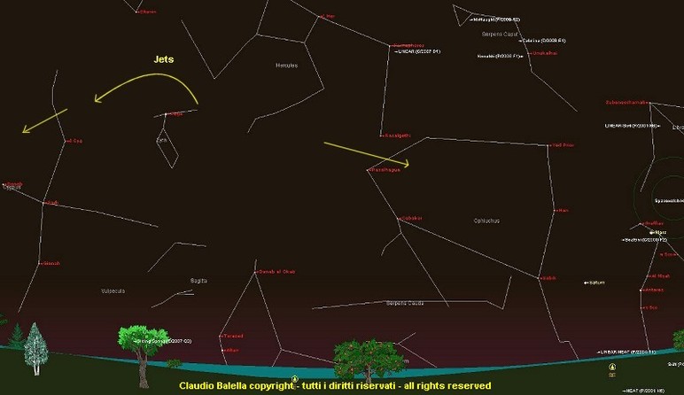Mappe del cielo con gli elementi dell'avvistamento: gli ufo ed i jets militari
