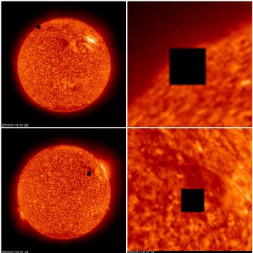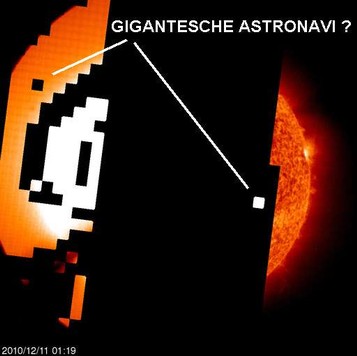 Subito ho valutato la foto ed è stato evidente che non era altro che un difetto dell'immagine dovuto ad una mancanza di informazione nel gruppo di pixel o inviati male dalla sonda Soho a Terra o ricevuti male. Delle migliaia di foto inviate ogni qualche centinaio se ne riceve una diffettata per cui ci sono tanti esempi in circolazione. La foto che presento per dimostrare l'infondatezza dell'esistenza della fantomatica astronave è recente ma chiarisce bene il tutto.